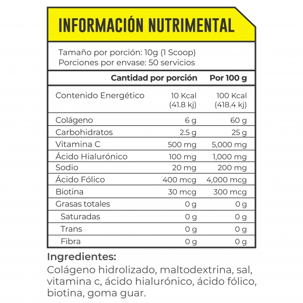 Preparación: mezclar 1 Scoop (10 g) en 250 ml de agua o con la bebida de tu preferencia, agitar hasta disolver.